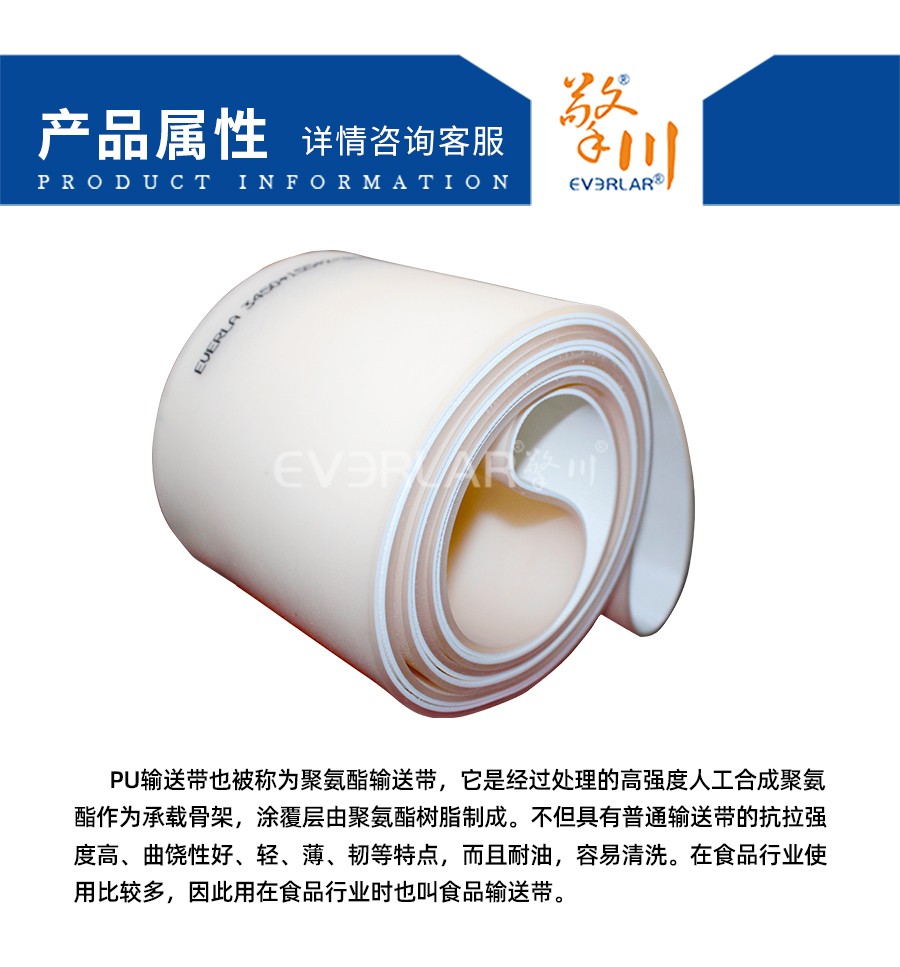 PU輸送帶也被稱為聚氨酯輸送帶,它是經(jīng)過處理的高強(qiáng)度人工合成聚氨酯作為承載骨架,涂覆層由聚氨酯樹脂制成。不但具有普通輸送帶的抗拉強(qiáng)度高、曲饒性好、輕、薄、韌等特點,而且耐油,容易清洗。在食品行業(yè)使用比較多,因此用在食品行業(yè)時也叫食品輸送帶。