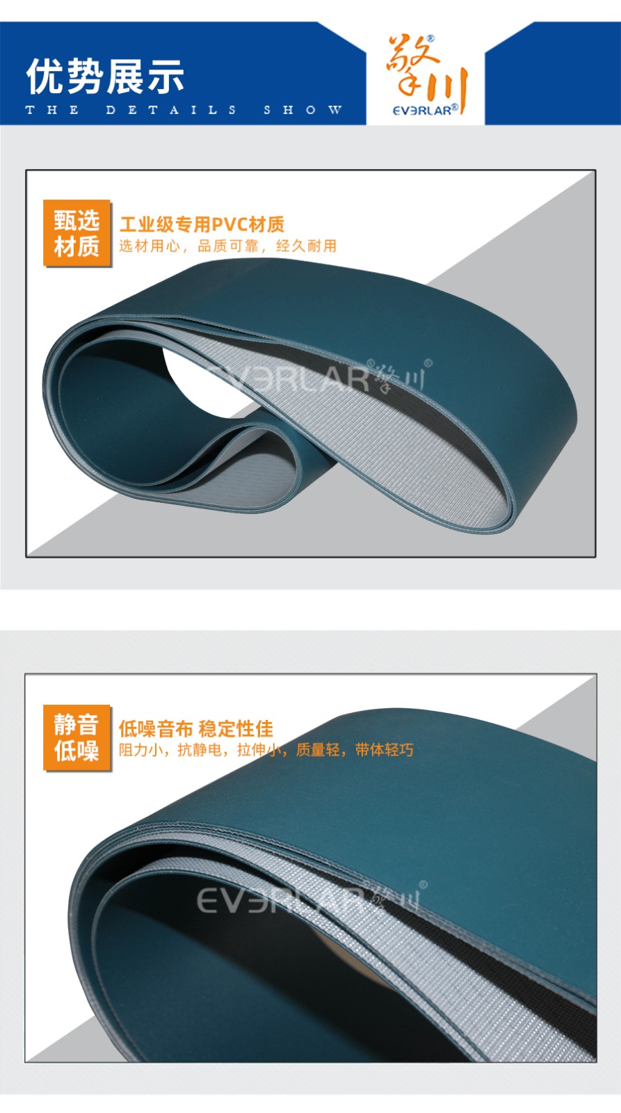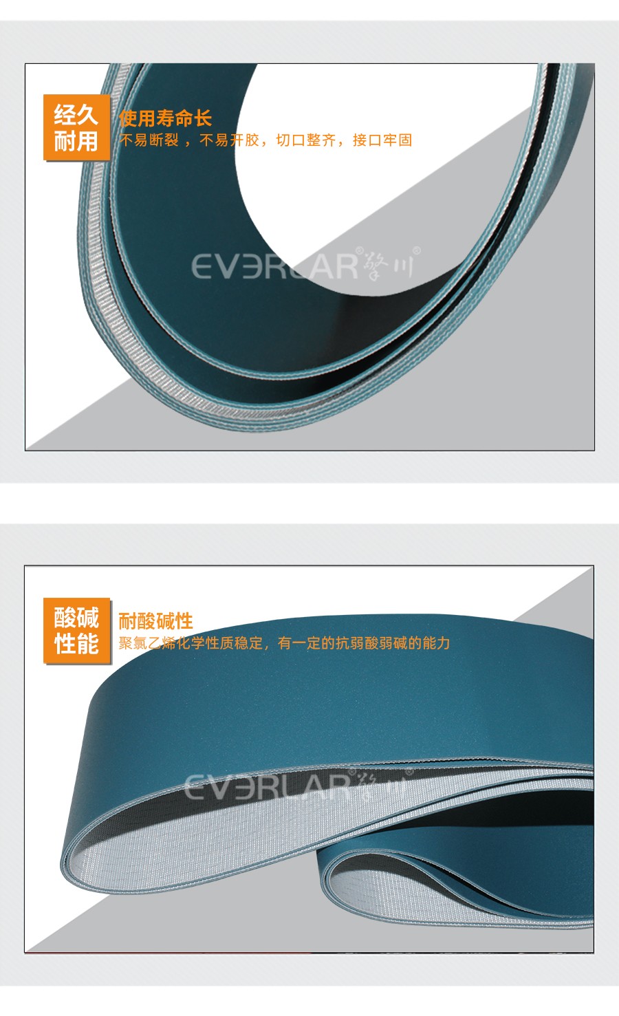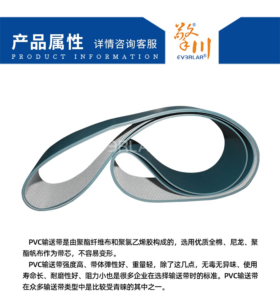 PVC輸送帶是由聚酯纖維布和聚氯乙烯膠構(gòu)成的,選用優(yōu)質(zhì)全棉、尼龍、聚酯帆布作為帶芯,不容易變形。