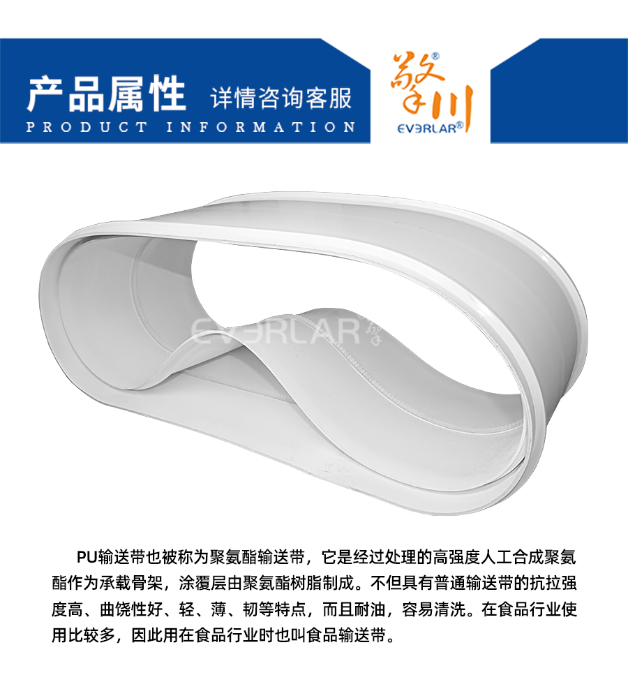PU輸送帶也被稱為聚氨酯輸送帶,它是經(jīng)過處理的高強度人工合成聚氨酯作為承載骨架,涂覆層由聚氨酯樹脂制成。不但具有普通輸送帶的抗拉強度高、曲饒性好、輕、薄、韌等特點,而且耐油,容易清洗。在食品行業(yè)使用比較多,因此用在食品行業(yè)時也叫食品輸送帶。