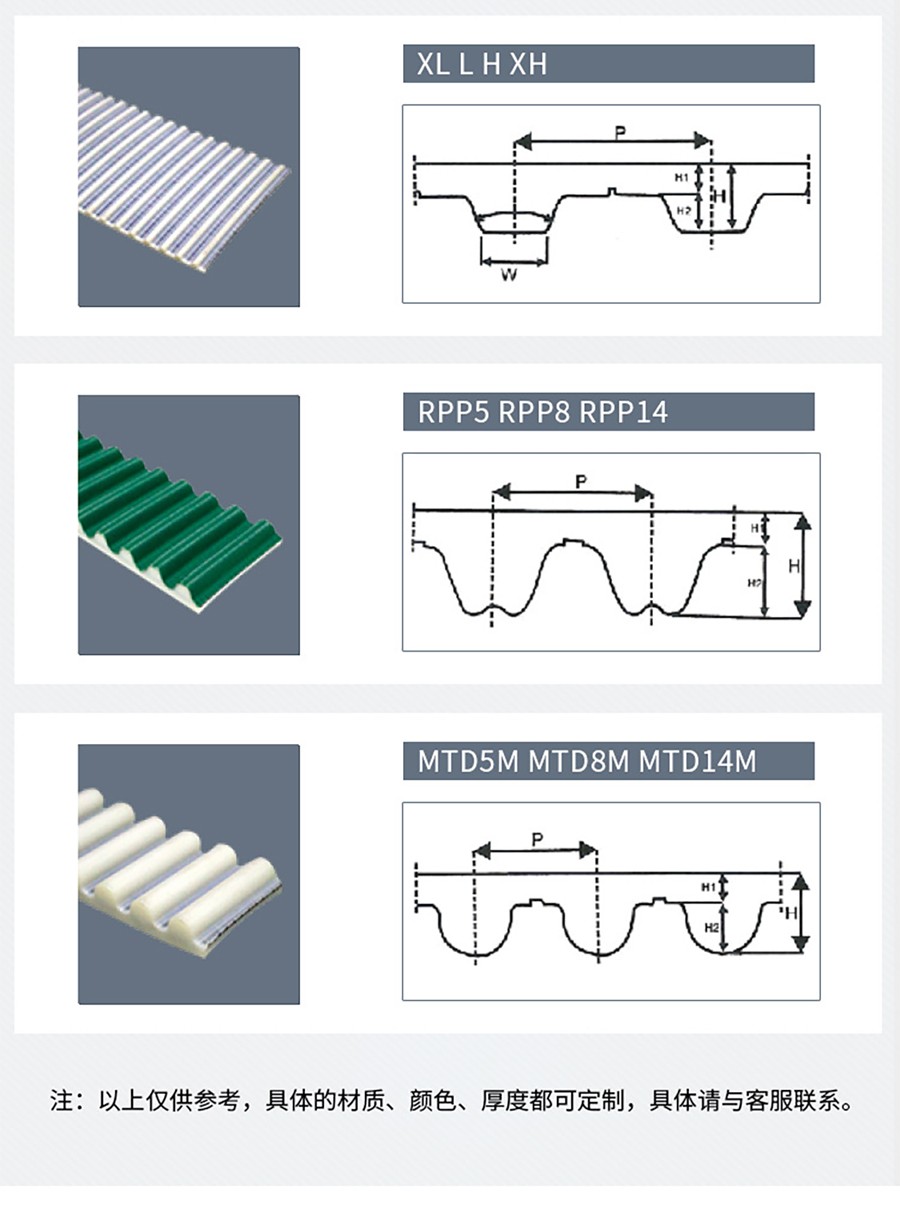 本樣品工業(yè)皮帶為PU同步帶加白膠開槽。此輸送帶經(jīng)過特殊加工,在皮帶上均加白膠開槽,用于防滑、提升。我司的工業(yè)皮帶長(zhǎng)度和寬度可根據(jù)客戶要求定制,表面可加開槽,防止產(chǎn)品掉落和提升,我司生產(chǎn)的同步帶接口牢固,美觀,加膠牢固,不斷裂不開膠,是各個(gè)行業(yè)機(jī)械中重要的配件。