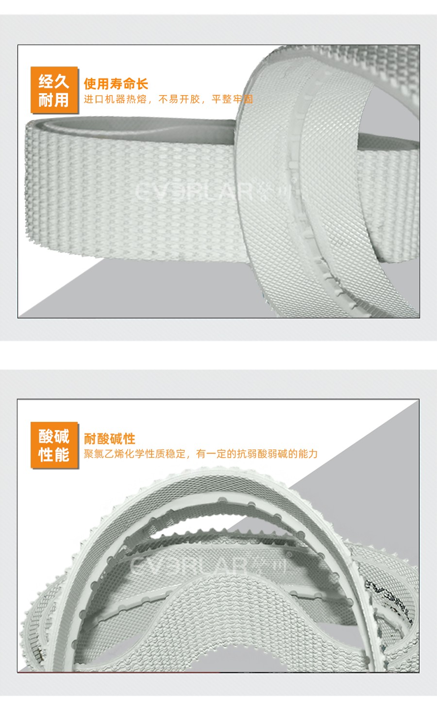 PVC輸送帶是由聚酯纖維布和聚氯乙烯膠構成的,選用優(yōu)質全棉、尼龍、聚酯帆布作為帶芯,不容易變形。