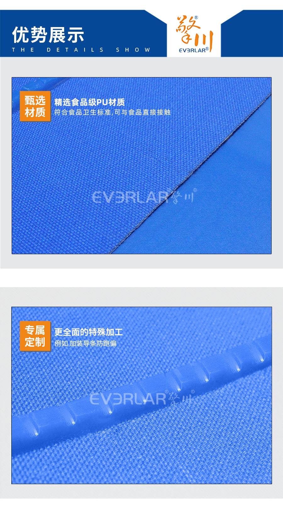 產(chǎn)品名稱:藍(lán)色PU食品輸送帶加導(dǎo)條