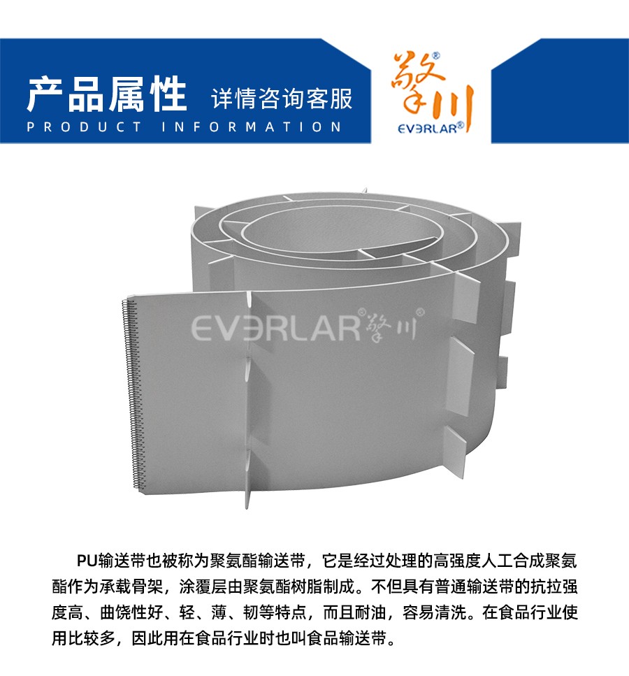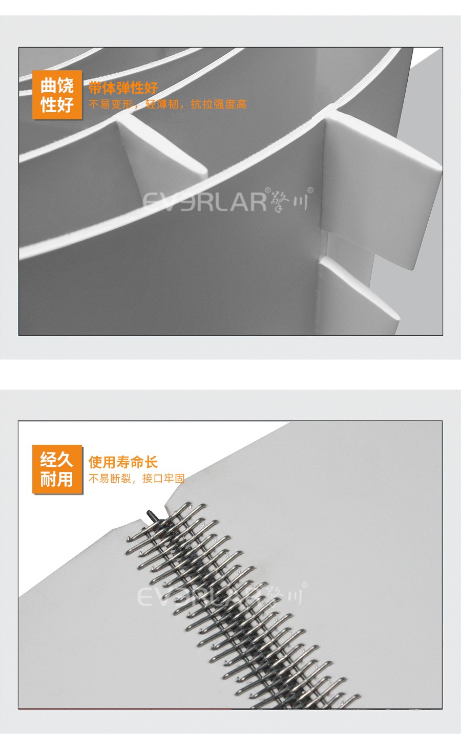 產(chǎn)品名稱:白色PU輸送帶加擋板打鋼扣