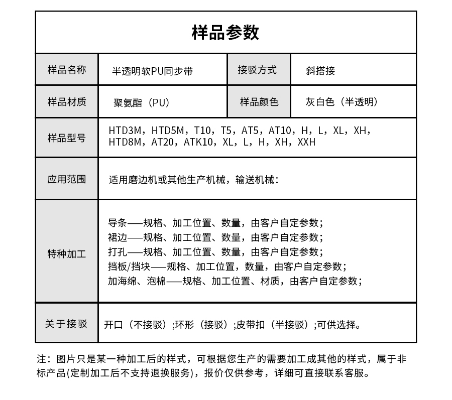 產(chǎn)品名稱:半透明軟PU同步帶磨邊機(jī)同步帶定制