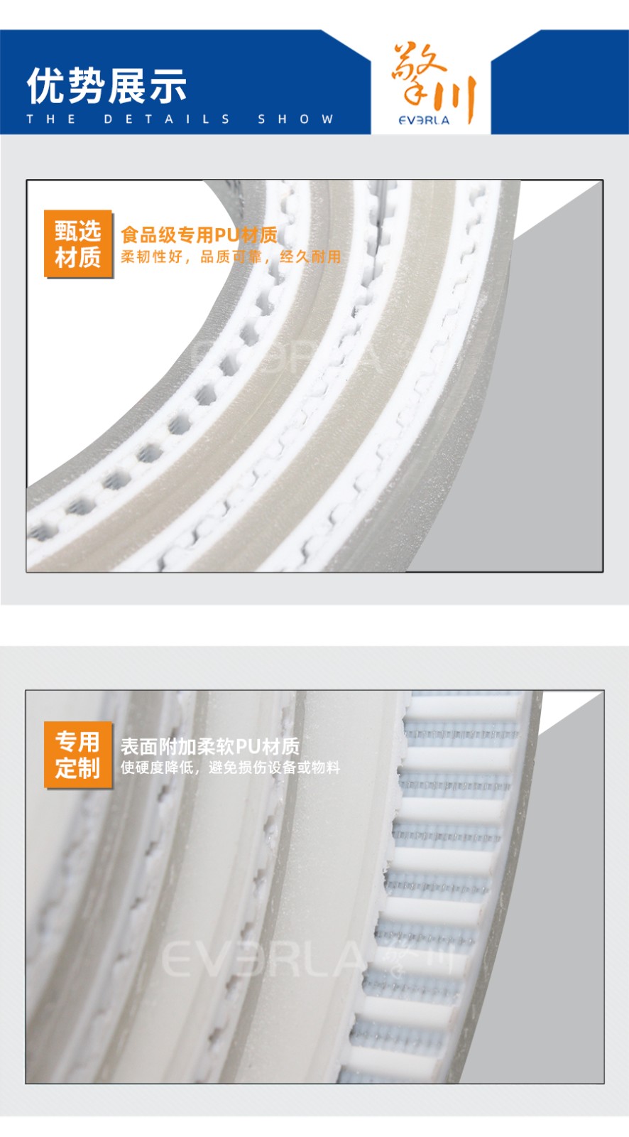 everlar擎川定制墨綠色PU輸送帶食品包裝輸送皮帶