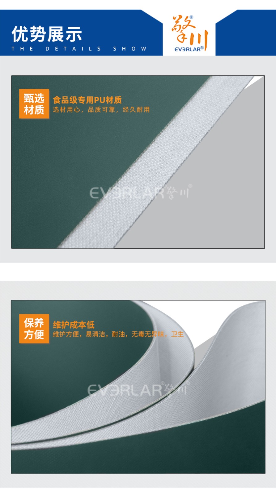 產(chǎn)品名稱:everlar擎川定制墨綠色PU輸送帶食品包裝輸送皮帶