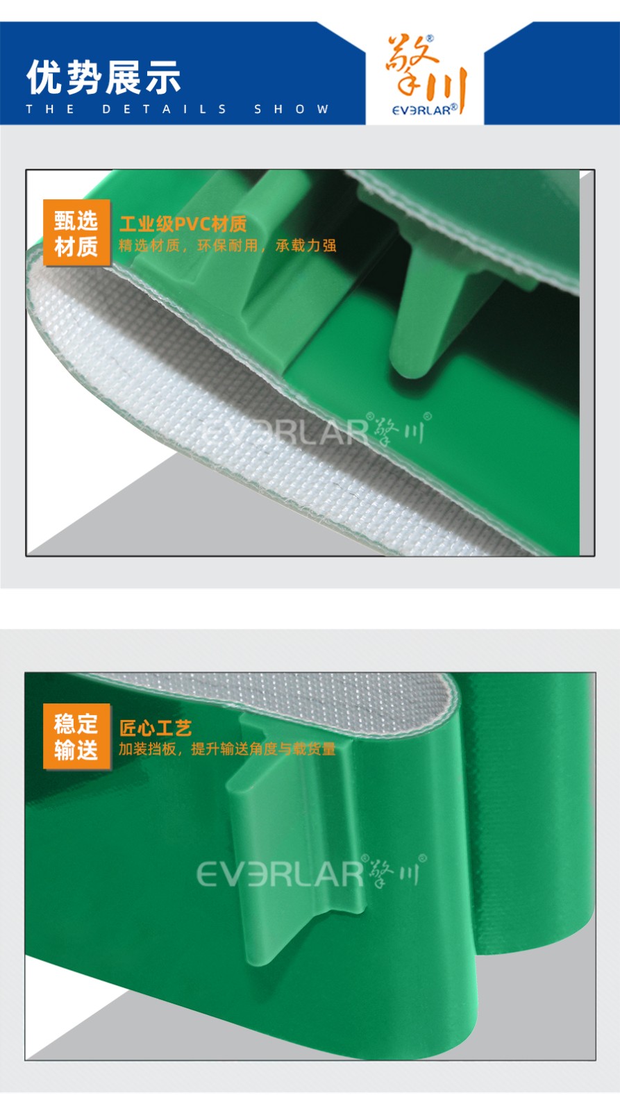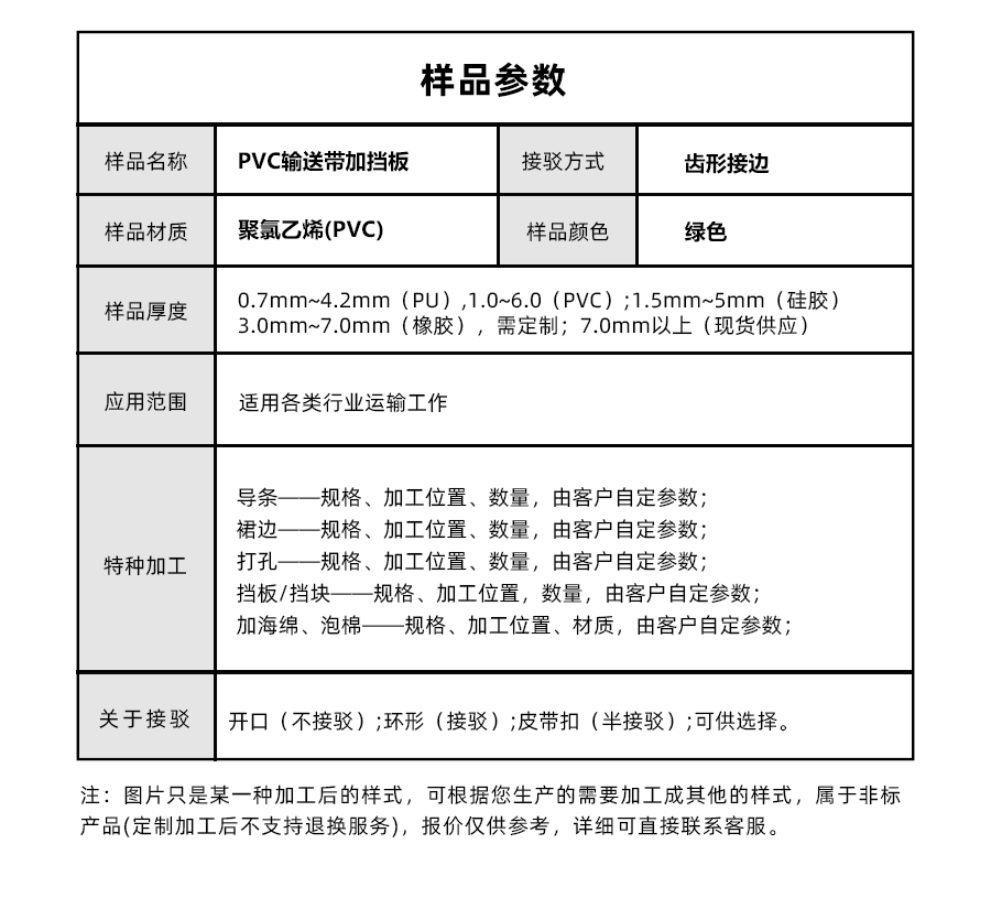• 產(chǎn)品名稱:擎川everlar定制綠色加擋板PVC輸送帶