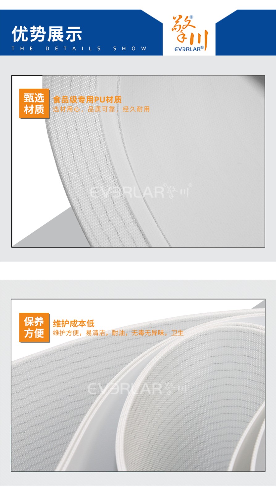 產(chǎn)品名稱:擎川everlar定制白色PU輸送帶