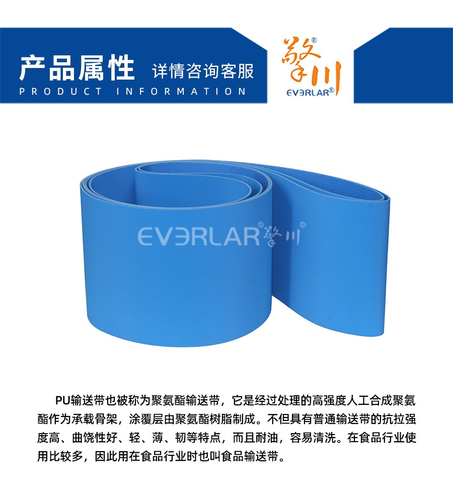 • 產(chǎn)品名稱:擎川everlar定制藍色鉆紋PU輸送帶食品輸送帶