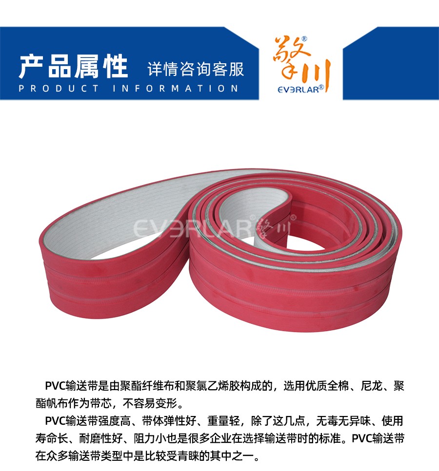 • 產品名稱:擎川everlar加紅膠PVC輸送帶食品輸送帶