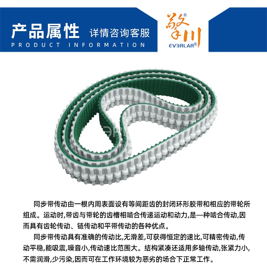 • 產(chǎn)品名稱:擎川everlar綠色草紋PU同步帶食品輸送帶