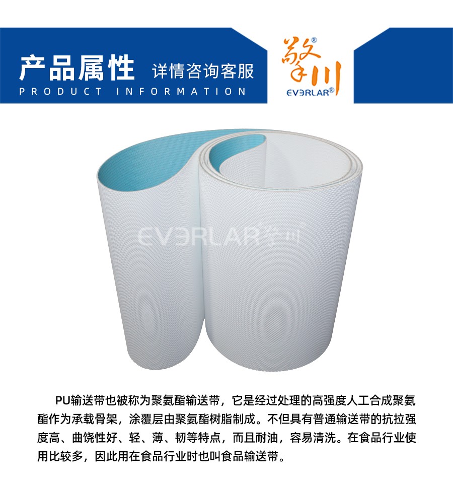• 產品名稱:藍白色鉆紋PU輸送帶食品級輸送帶