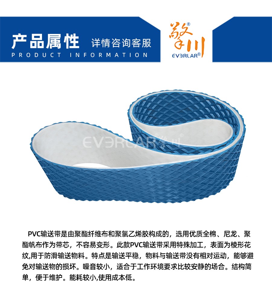 藍(lán)白色鉆紋PU輸送帶食品級(jí)輸送帶