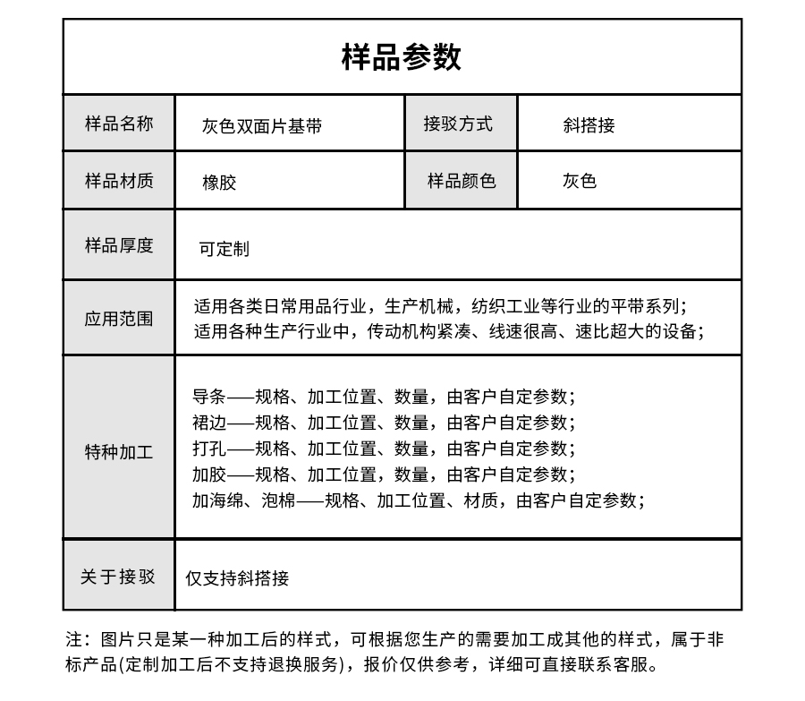 產(chǎn)品名稱(chēng):灰色雙面片基帶擎川橡膠尼龍輸送帶工業(yè)皮帶
