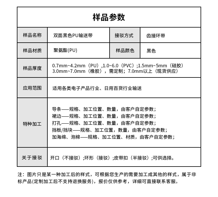 • 產(chǎn)品名稱:pu輸送帶黑色打孔聚氨酯傳送帶黑色pu工業(yè)皮帶