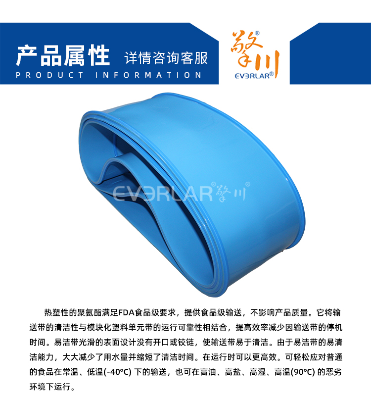 產(chǎn)品名稱:藍(lán)色易清潔帶加導(dǎo)條耐油易清潔食品運(yùn)輸機(jī)工業(yè)皮帶定制
