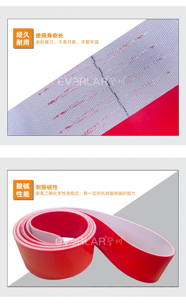 • 產(chǎn)品名稱:紅色PVC輸送帶耐磨耐腐蝕食品級工業(yè)皮帶定制