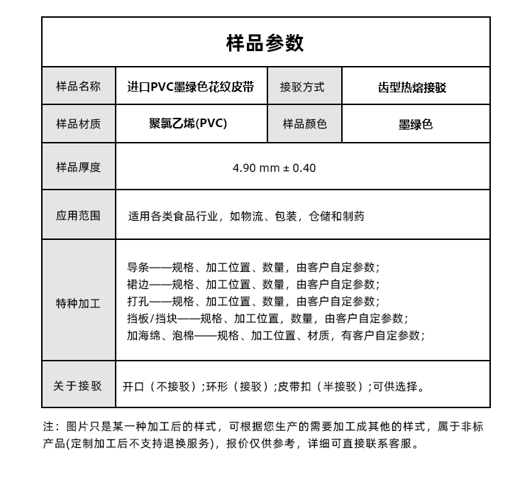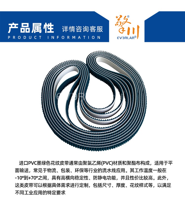 產(chǎn)品名稱:進(jìn)口PVC墨綠色花紋皮帶耐磨防滑耐腐蝕工業(yè)皮帶