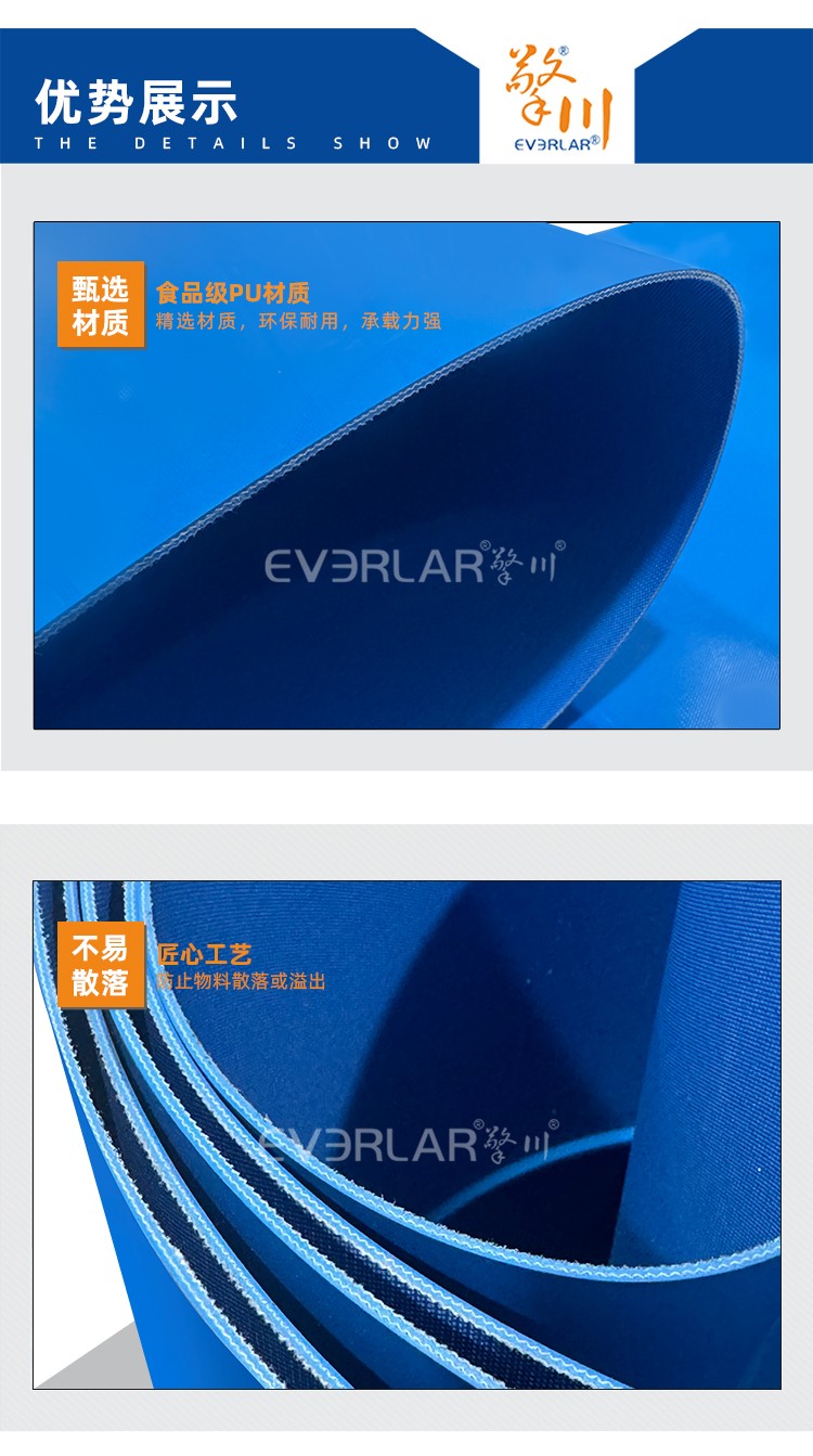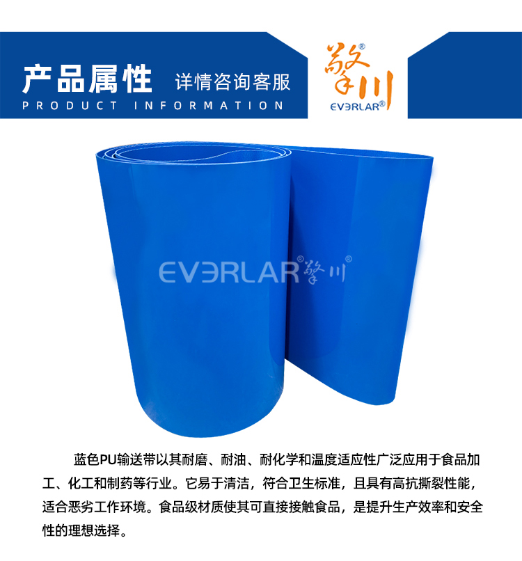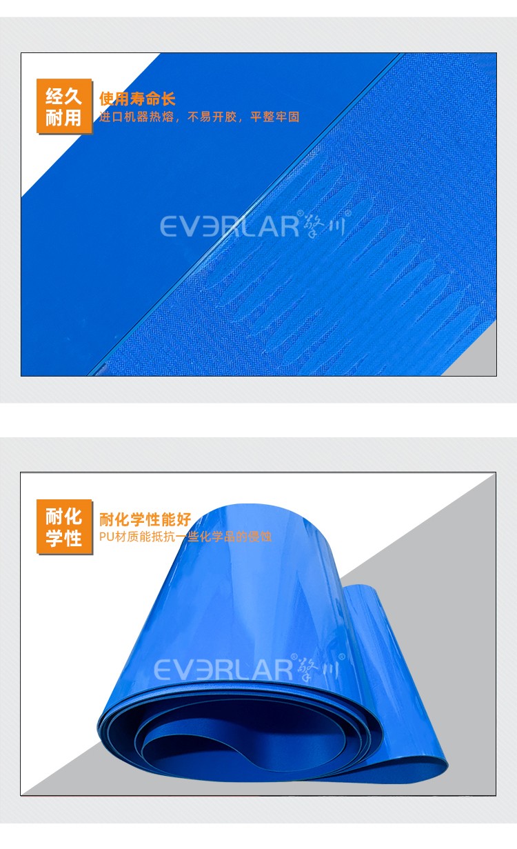 • 產(chǎn)品名稱:藍色PU輸送帶加導條耐磨耐油耐腐蝕工業(yè)皮帶定制