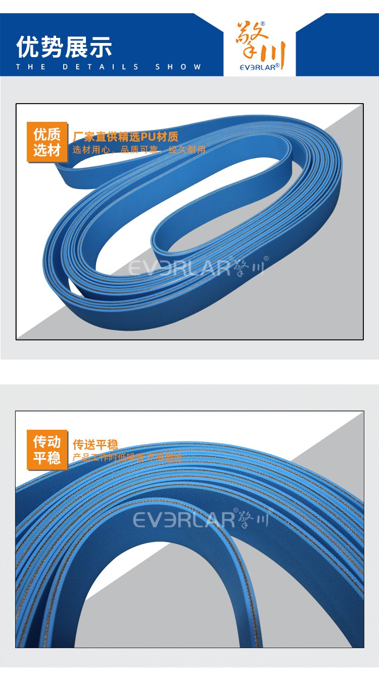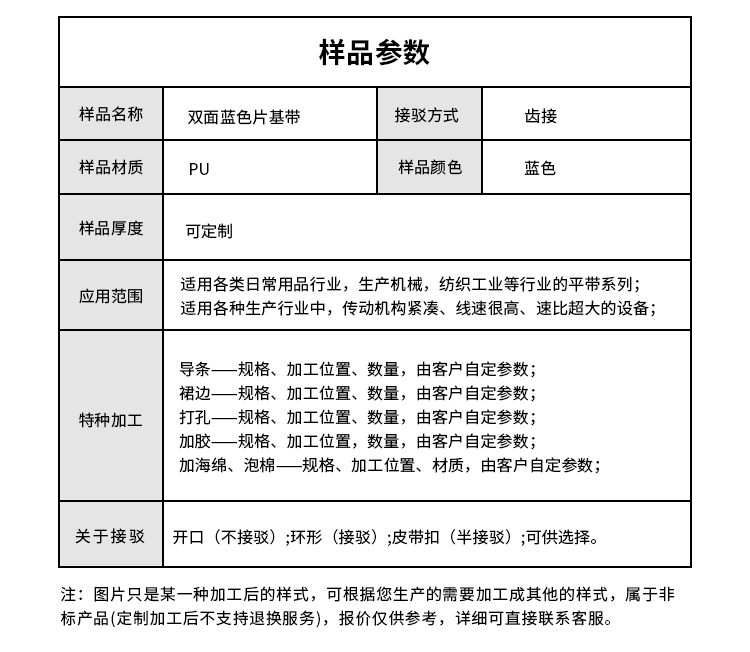 產(chǎn)品名稱(chēng):雙面藍(lán)色片基帶耐磨耐曲撓拉力強(qiáng)工業(yè)皮帶