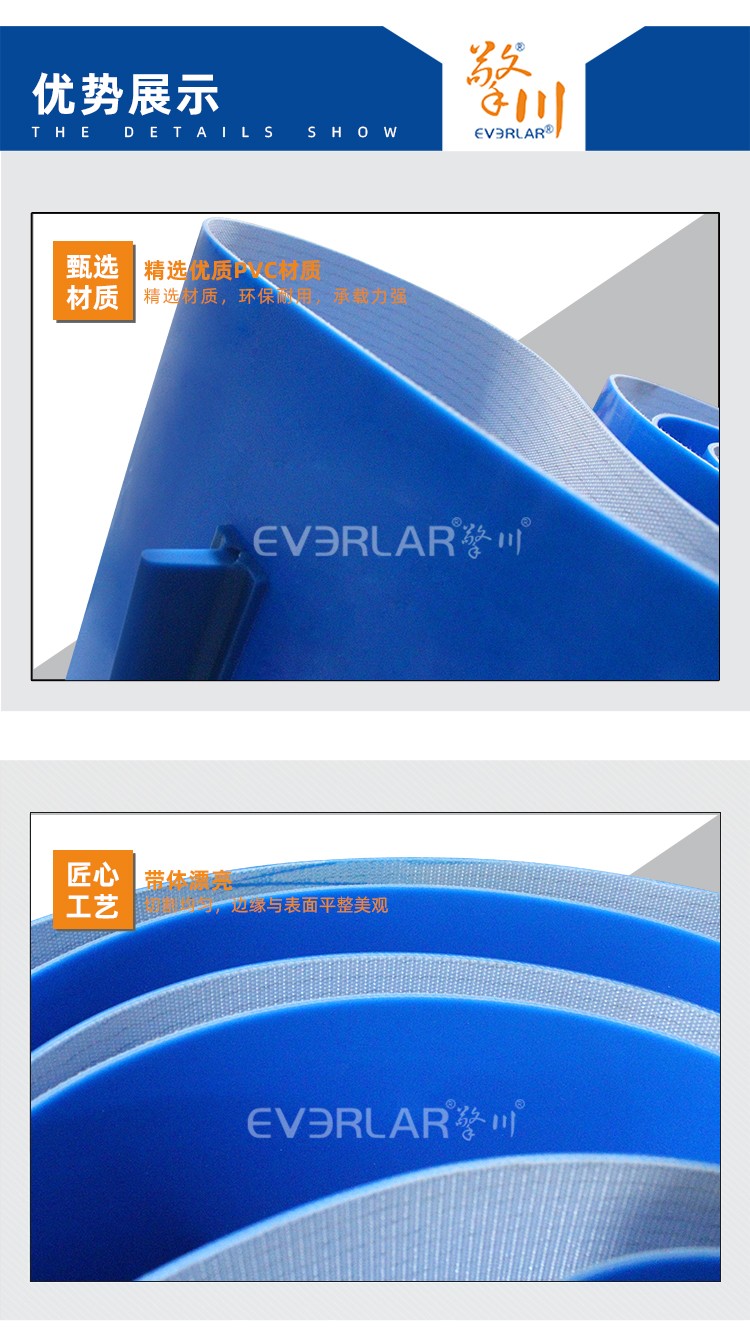 藍(lán)色PU輸送帶加擋塊耐磨耐油耐腐蝕工業(yè)皮帶
