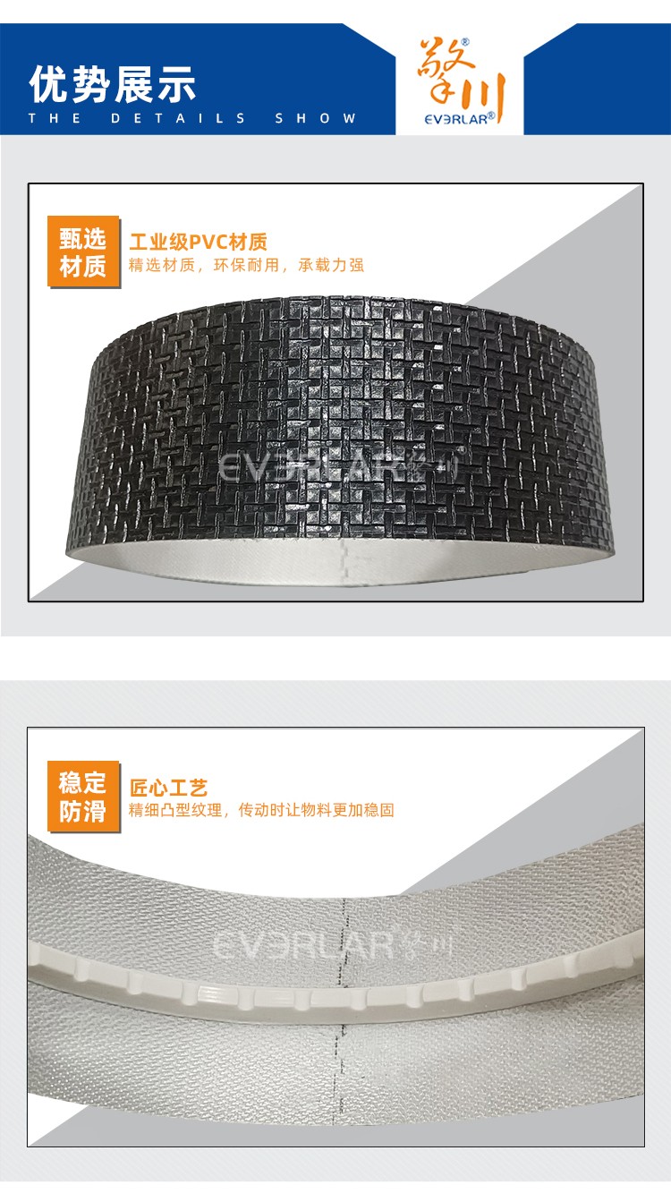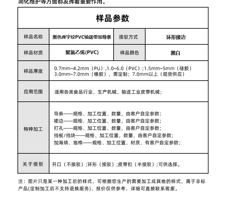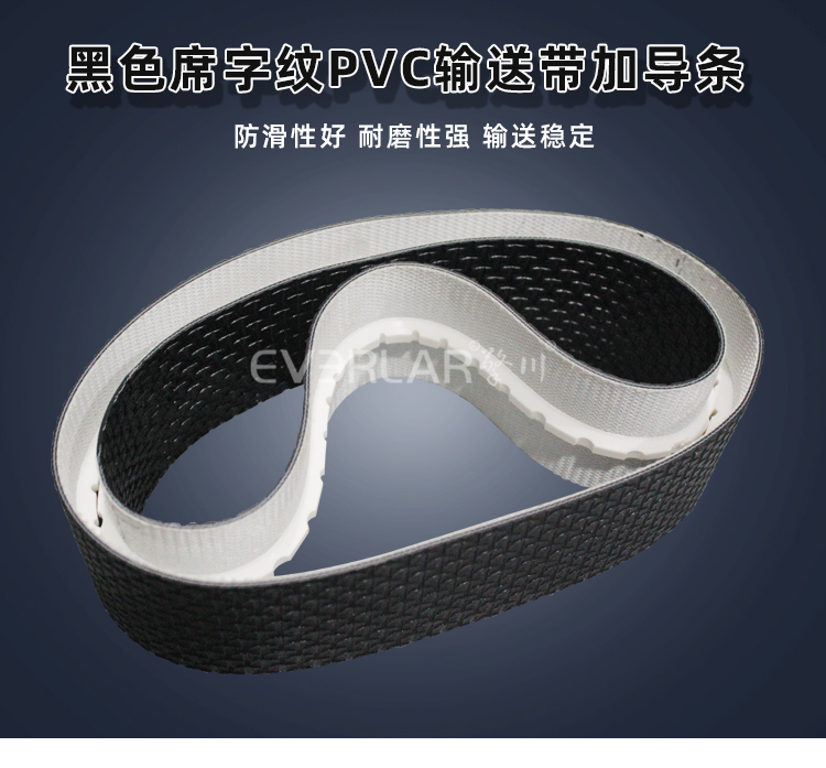 產(chǎn)品名稱:黑色席字紋PVC輸送帶加導(dǎo)條耐磨防靜電耐腐蝕工業(yè)皮帶