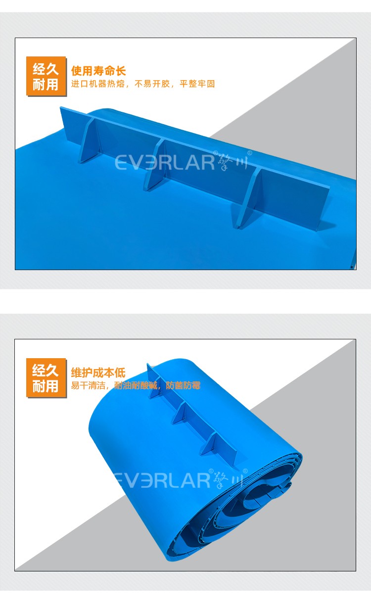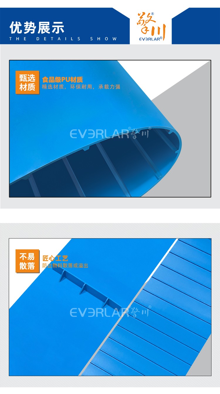 產(chǎn)品名稱(chēng):易清潔TPU加擋板輸送帶藍(lán)色食品級(jí)防溢抗污生產(chǎn)線(xiàn)設(shè)備傳送帶