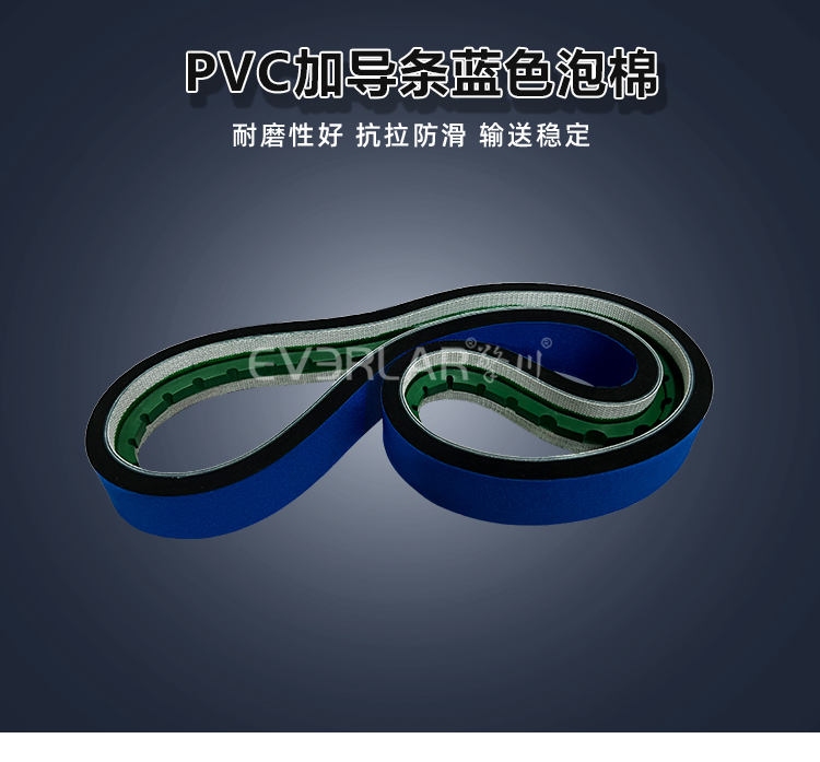 產(chǎn)品名稱:PVC藍(lán)布泡棉導(dǎo)條輸送帶耐磨緩沖包裝物流包裝機(jī)輸送線皮帶