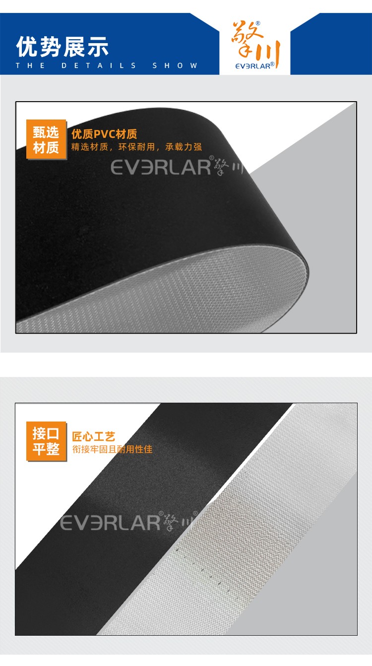 產(chǎn)品名稱(chēng):黑色啞光PVC輸送帶耐磨防滑食品電子輸送機(jī)分揀線傳送帶