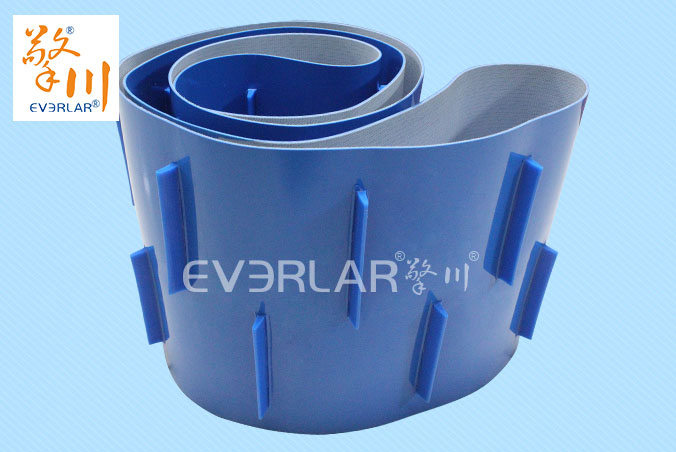 為食品、醫(yī)藥、包裝、日化提供一站式特殊定制PU輸送帶:藍(lán)色PU輸送帶加擋塊的關(guān)鍵作用