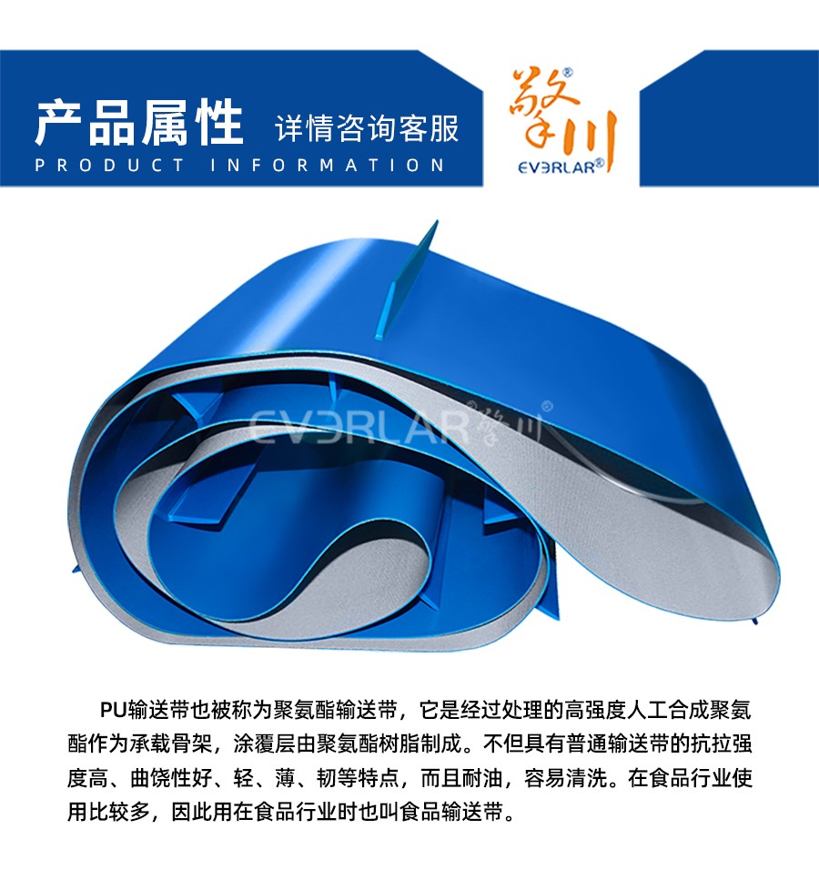 PU輸送帶也被稱為聚氨酯輸送帶,它是經(jīng)過處理的高強度人工合成聚氨酯作為承載骨架,涂覆層由聚氨酯樹脂制成。不但具有普通輸送帶的抗拉強度高、曲饒性好、輕、薄、韌等特點,而且耐油,容易清洗。在食品行業(yè)使用比較多,因此用在食品行業(yè)時也叫食品輸送帶。