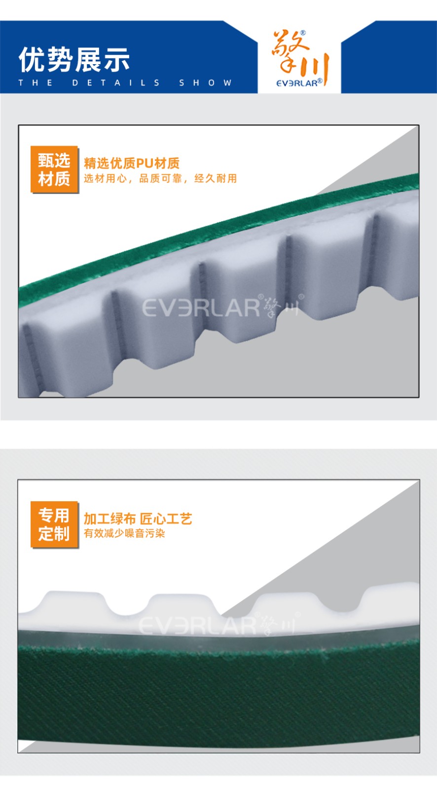 PU同步帶也被稱為聚氨酯同步帶,它是經(jīng)過處理的高強(qiáng)度人工合成聚氨酯作為承載骨架,涂覆層由聚氨酯樹脂制成。不但具有普通輸送帶的抗拉強(qiáng)度高、曲饒性好、輕、薄、韌等特點(diǎn),而且耐油,耐磨。本樣品根據(jù)客戶行業(yè)需求進(jìn)行加工,加工PU綠布。該處加工設(shè)計(jì),可有效防止刮花,防止生產(chǎn)印記殘留,高度保護(hù)生產(chǎn)中的產(chǎn)品,可用于玻璃絲印機(jī)等機(jī)械。專用定制設(shè)計(jì)加工,高度匹配客戶使用。