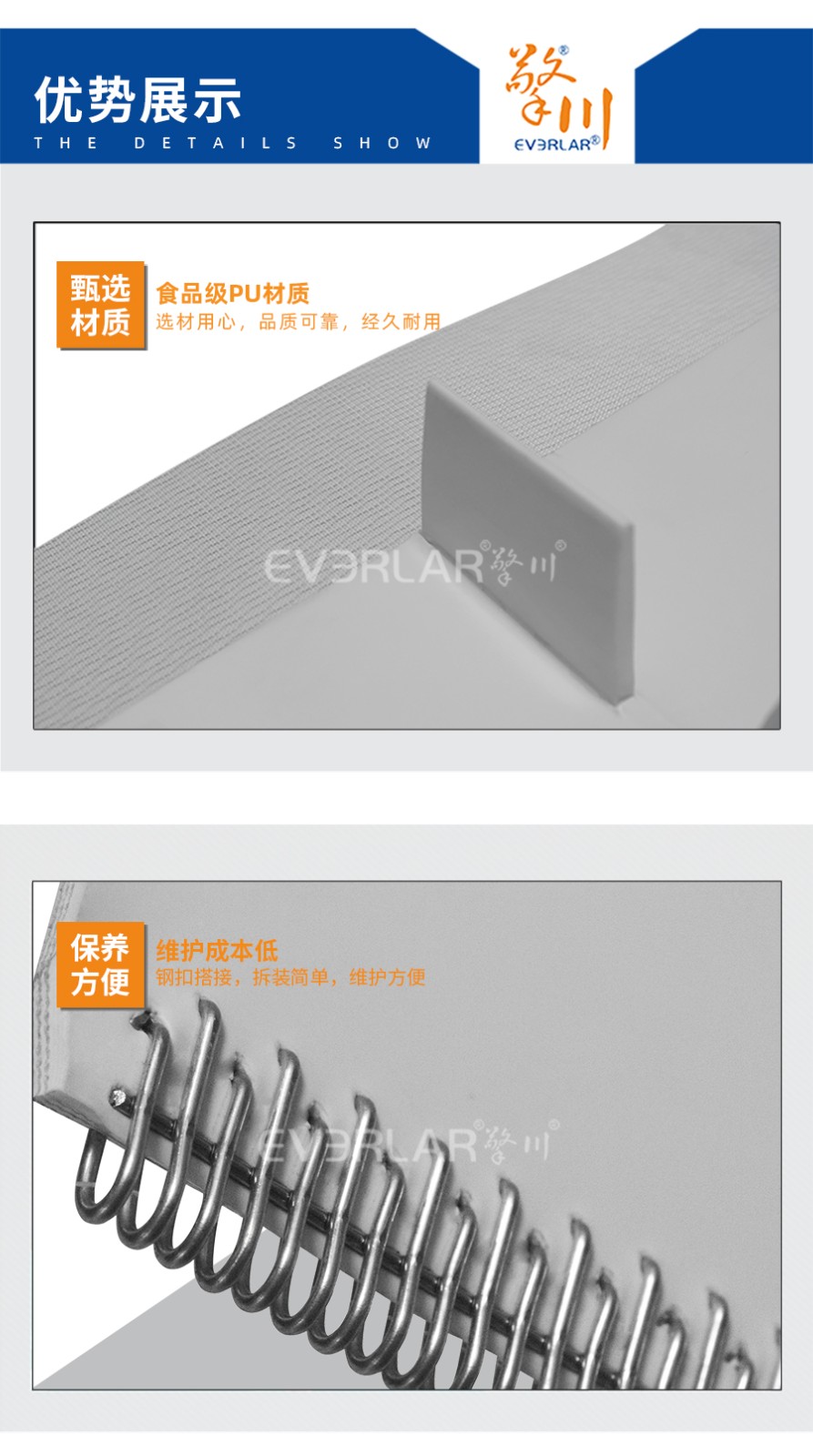 產(chǎn)品名稱:白色PU輸送帶加擋板打鋼扣