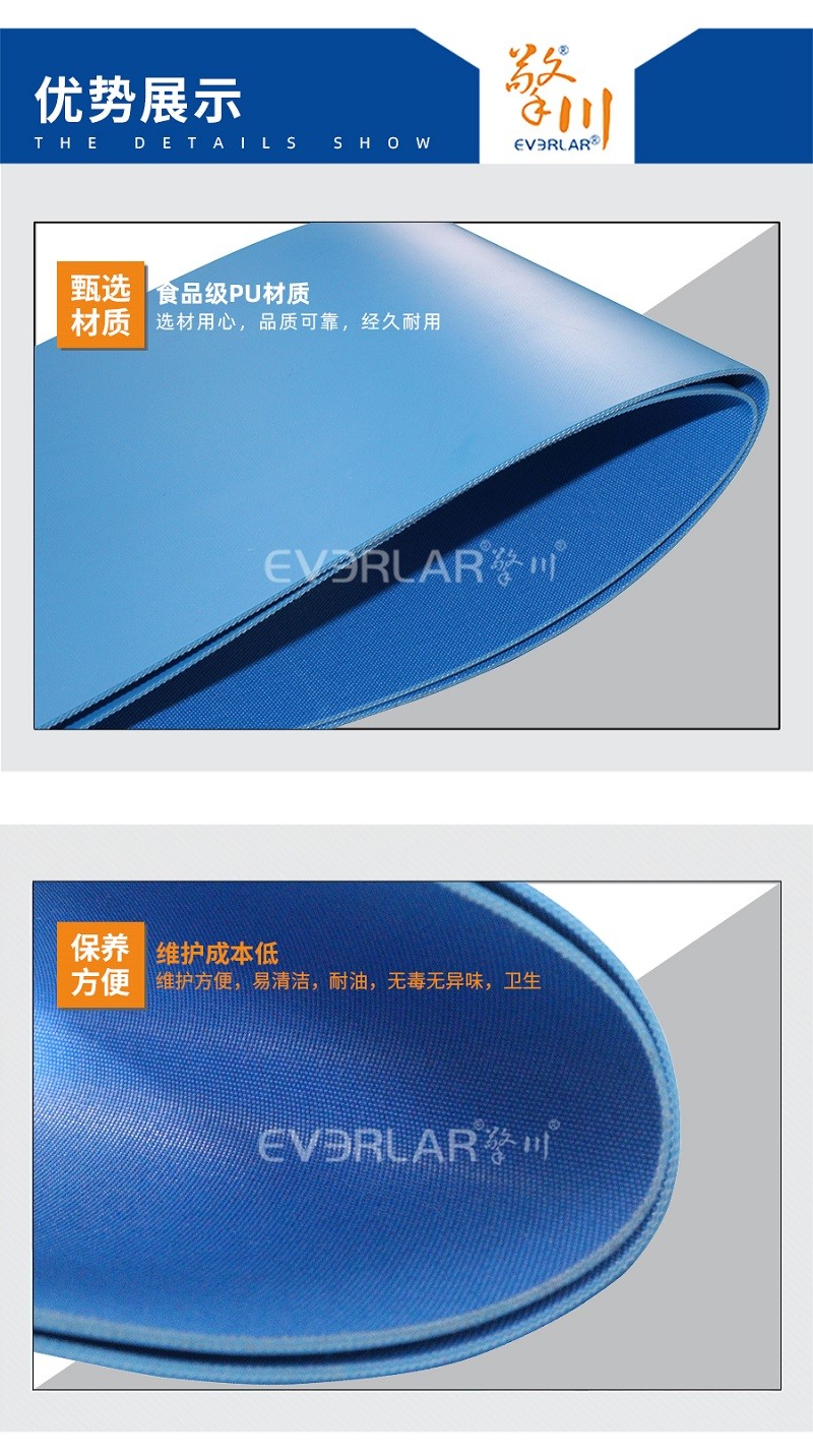 | 樣品名稱 | 藍色PU食品輸送帶 | 接駁方式 | 齒接環(huán)帶 |