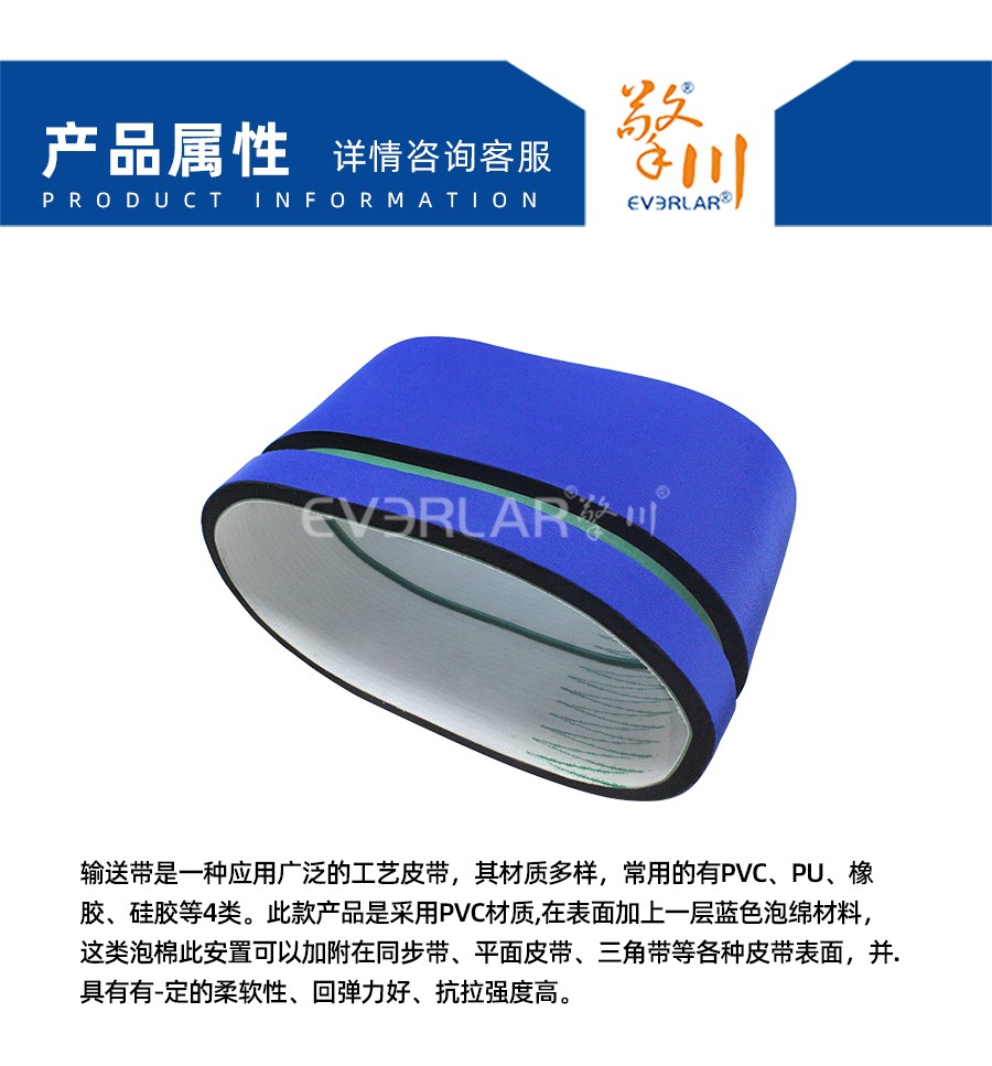 底帶厚度 | 0.7mm~4.2mm (PU) ,1.0~6.0 (PVC) ;1.5mm~5mm (硅膠)3.0mm~7.0mm ( 橡膠),需定制; 7.0mm以上(現(xiàn)貨供應(yīng)) | 應(yīng)用范圍 | 1、貼標(biāo)機做卷瓶帶使用,壓緊標(biāo)簽; 2、糊盒機..上用作壓盒帶; 3、電子元件的電鍍上用掩膜帶; |
