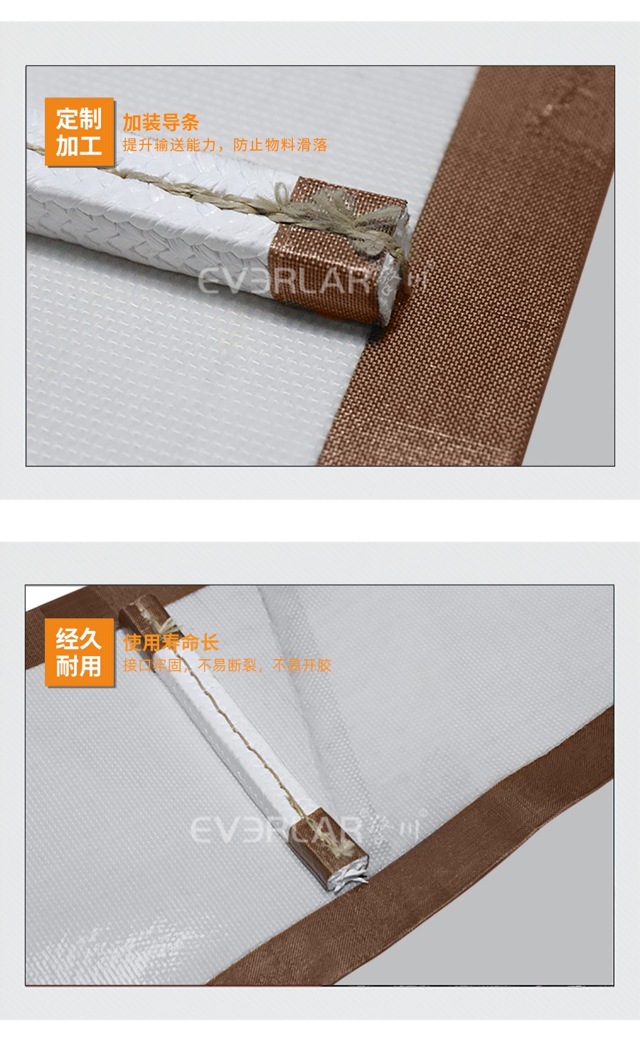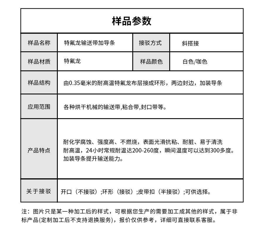 • 產品名稱:特氟龍耐高溫輸送帶加導條