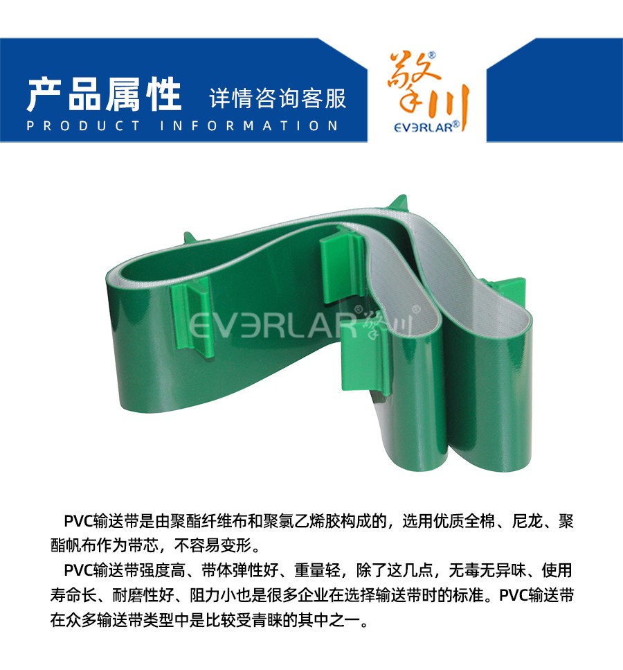 • 產(chǎn)品名稱:擎川everlar定制綠色加擋板PVC輸送帶