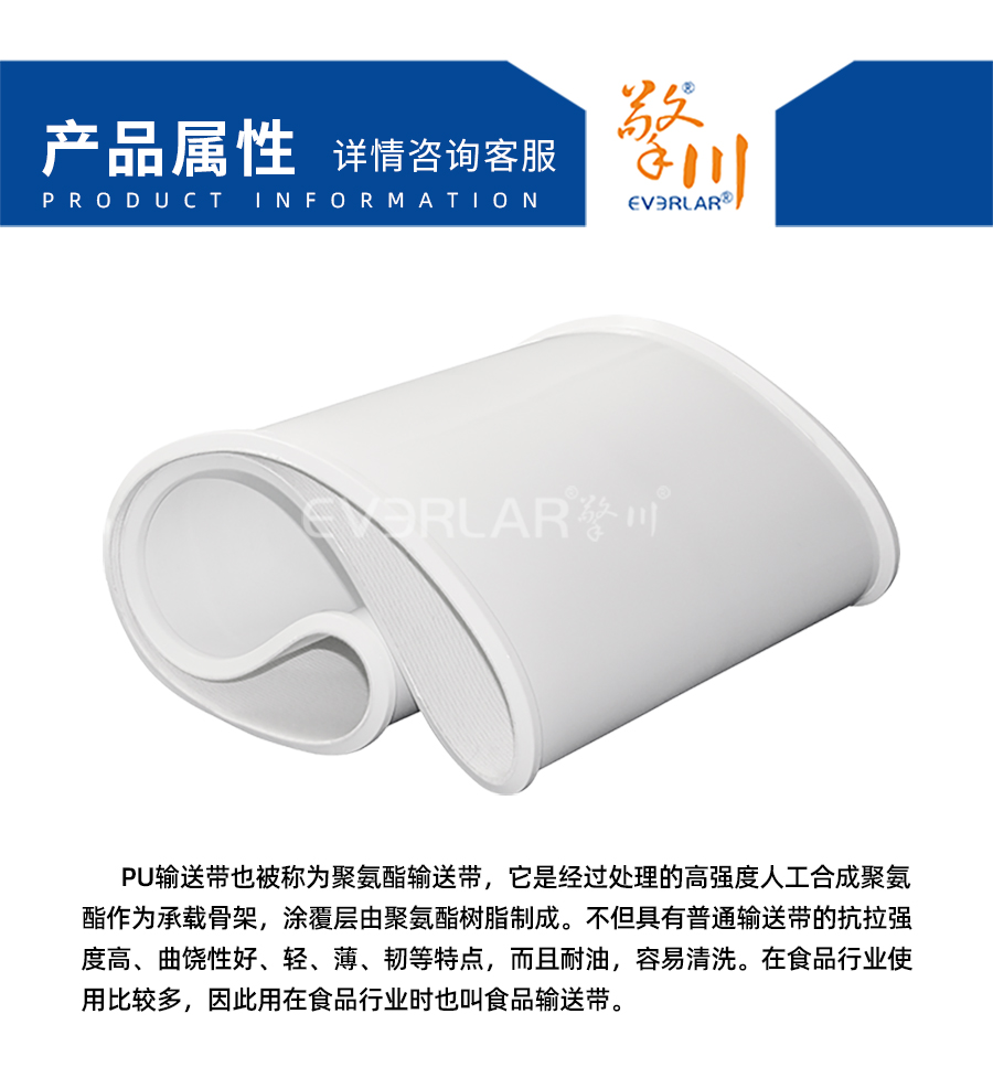 產(chǎn)品名稱:擎川everlar定制白色加雙導(dǎo)條聚氨酯PU食品輸送帶