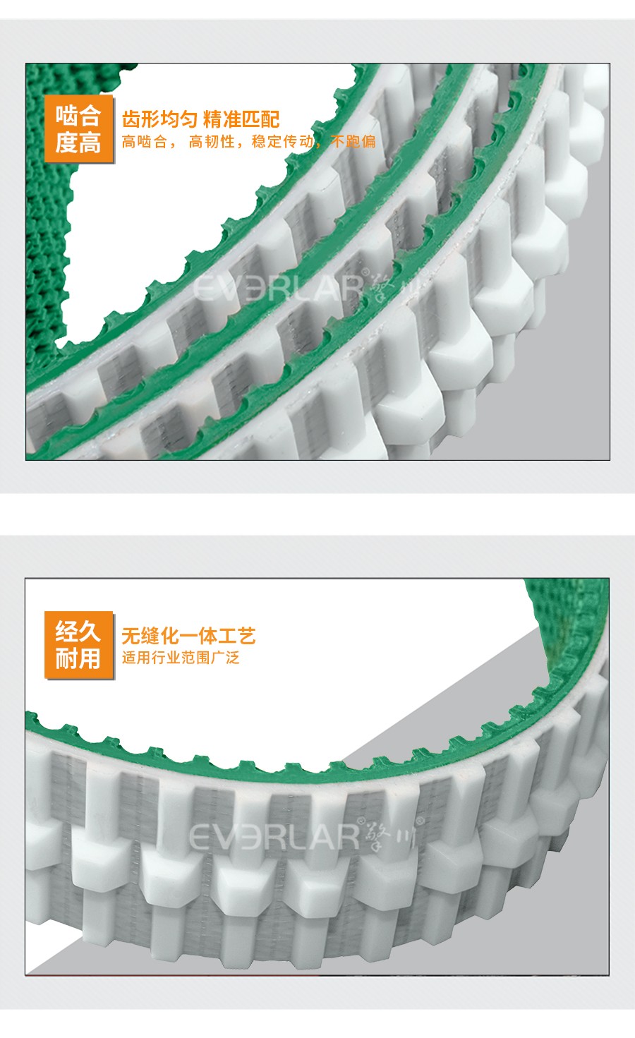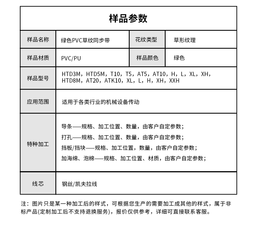 • 產(chǎn)品名稱:擎川everlar綠色草紋PU同步帶食品輸送帶