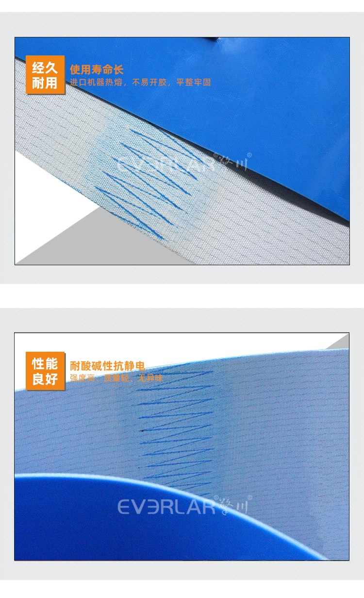 產(chǎn)品名稱:藍(lán)色PVC輸送帶加擋板耐磨耐油耐腐蝕工業(yè)皮帶定制