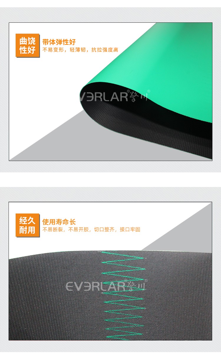 • 產(chǎn)品名稱:綠黑PU輸送帶耐磨耐切割耐腐蝕工業(yè)皮帶定制