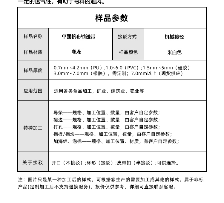 產(chǎn)品名稱:單面帆布輸送帶耐磨耐高溫工業(yè)皮帶定制