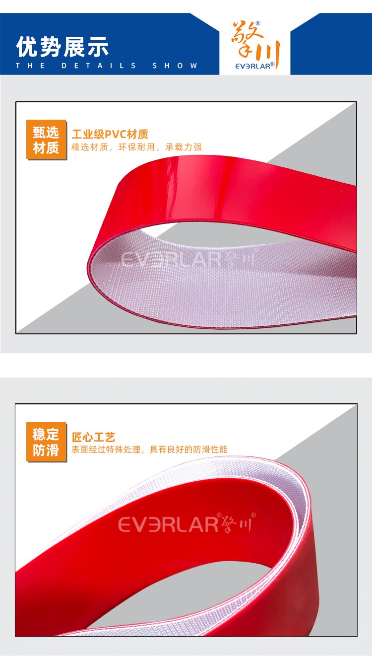 • 紅色PVC輸送帶耐磨耐腐蝕食品級工業(yè)皮帶定制
