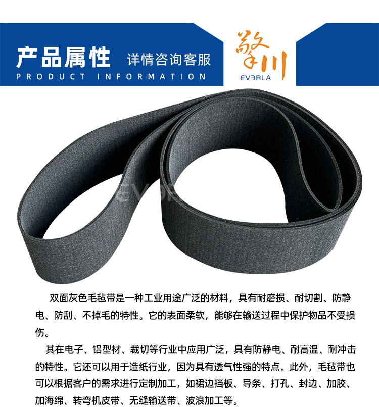 • 灰色毛氈輸送帶耐磨降噪防靜電工業(yè)皮帶