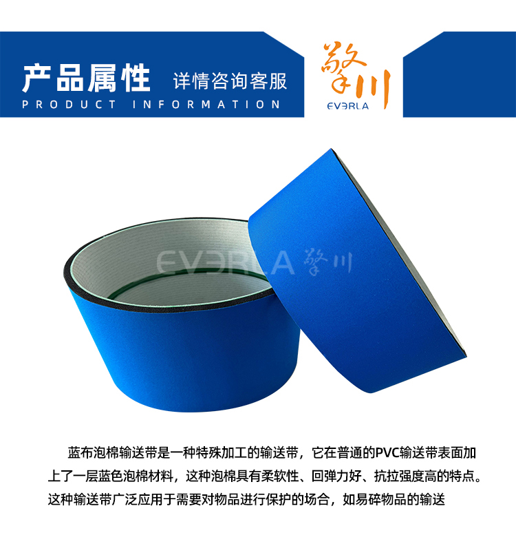 產(chǎn)品名稱(chēng):藍(lán)色泡棉輸送帶加導(dǎo)條耐磨降噪防滑工業(yè)皮帶