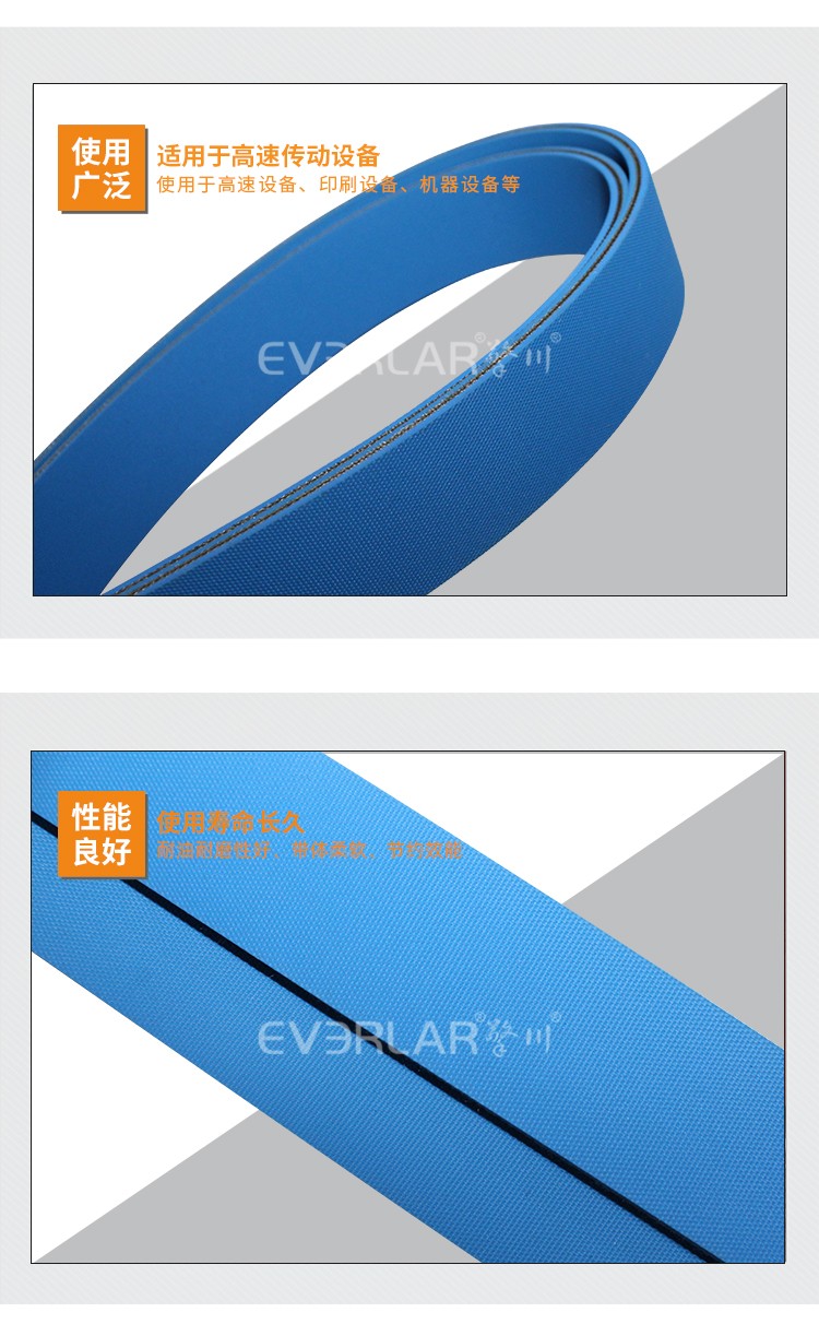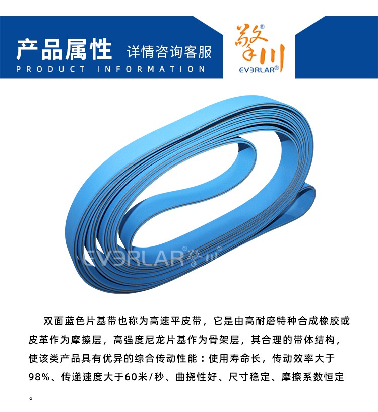產(chǎn)品名稱(chēng):雙面藍(lán)色片基帶耐磨耐曲撓拉力強(qiáng)工業(yè)皮帶