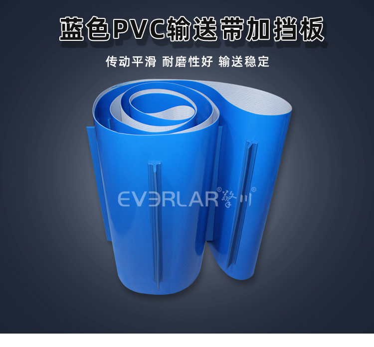 藍(lán)色PU輸送帶加擋塊耐磨耐油耐腐蝕工業(yè)皮帶