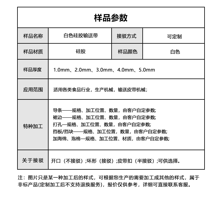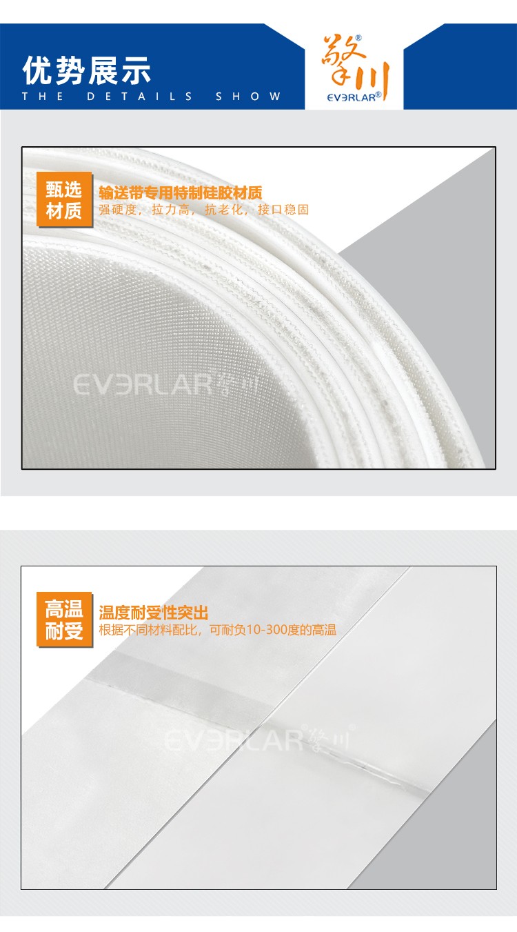 • 產(chǎn)品名稱:白色硅膠輸送帶耐高溫防腐蝕食品 醫(yī)療 日化輸送設(shè)備傳動皮帶擎川定制