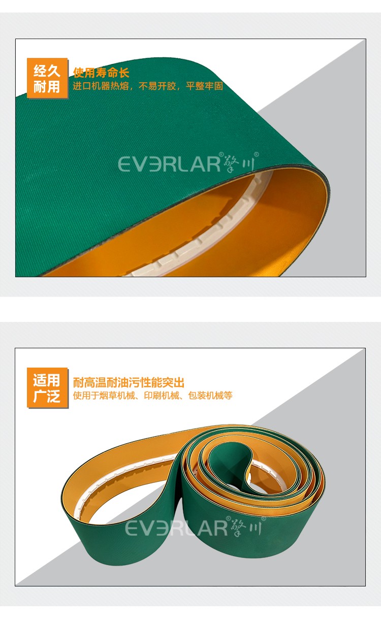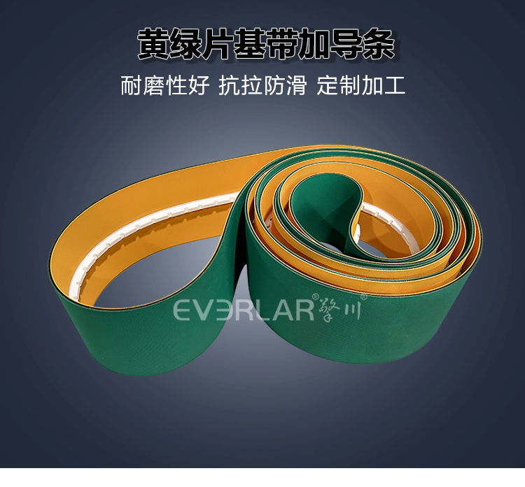 • 產(chǎn)品名稱:黃綠片基帶加導條耐磨防滑電子行業(yè)電子元件分揀機工業(yè)皮帶擎川定制