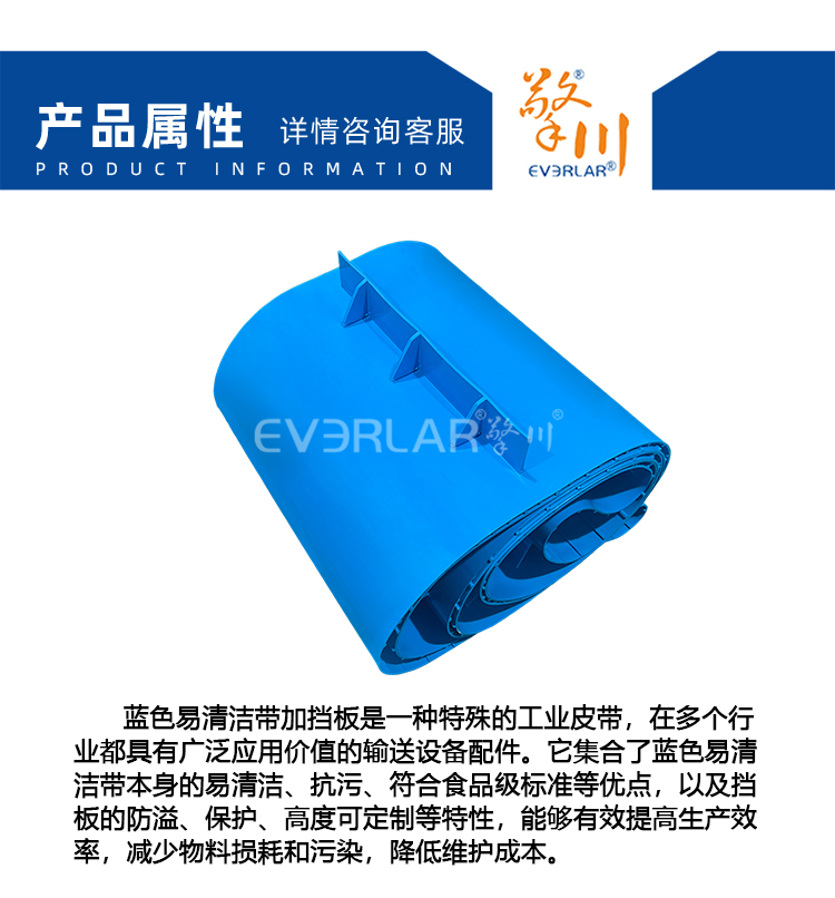 產(chǎn)品名稱(chēng):易清潔TPU加擋板輸送帶藍(lán)色食品級(jí)防溢抗污生產(chǎn)線(xiàn)設(shè)備傳送帶